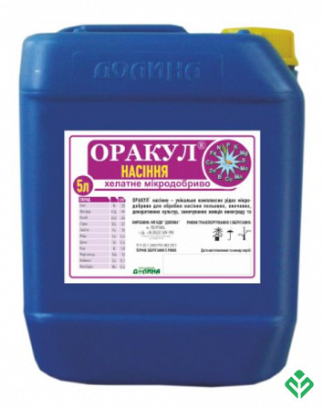 **ОРАКУЛ® Семена: Унікальне Комплексне Жидке Мікродобриво для Обробки Сім'ян** ОРАКУЛ® Семена - це унікальне комплексне жидке мікродобриво, призначене для обробки сім'ян полевих, овочевих, декоративних культур, картоплі, замочування саджанців винограду та плодово-ягідних культур з метою їхнього уко...