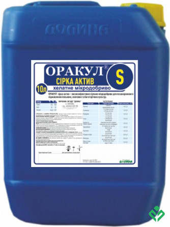 ОРАКУЛ® сера актив є високоефективним серним мікродобривом для позакореневого підживлення полевих, овочевих та багаторічних культур. Препарат ефективно усуває дефіцит сірки у рослинах. Він не містить балластних добавок, тому не викликає опіків листя, повністю вбирається через листкову поверхню росли...