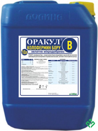 **ОРАКУЛ® Колофермін бору** - концентроване борне мікродобриво в органічній (легкоусвояємій) формі для позакореневого підживлення полів, овочів та багаторічних культур. Препарат ефективно ліквідує дефіцит бору в рослинах. Не містить баластних домішок, тому не викликає опіків листя, повністю засвоює...