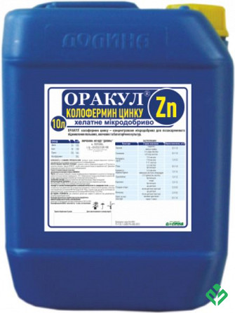 ОРАКУЛ® Колофермін цинку - концентроване мікродобриво для позакореневого підживлення полевих, овочевих та багаторічних культур. Препарат ефективно ліквідує дефіцит цинку в рослинах. Не містить баластних добавок, тому не викликає опіків листя, повністю засвоюється через листкову поверхню рослин. ОРА...