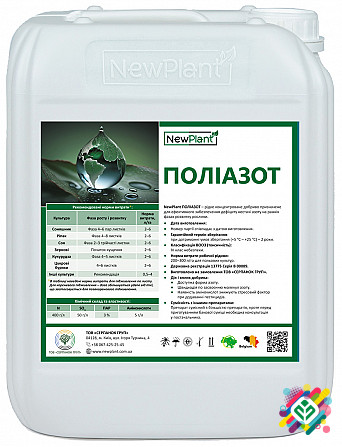 NewPlant Поліазот IQ* - рідке концентроване добриво, розроблене для ефективного компенсування дефіциту азоту на початкових стадіях розвитку рослин. Склад продукту: - N - 400 г/л (азот) - SO3 - 50 г/л (сірка) - ПАР - 3% (фосфор) - Амінокислоти - 5 г/л NewPlant Поліазот IQ* містить високий вміст аз...