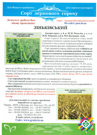 Пропонуємо посівний матеріал гороху жовтого сорту "Зеньковський перша репродукція" - сорт безлисточкового типу, отриманий шляхом скрещування сортів "Орловчанин" і "Consord". Цей сорт зернового гороху поєднує в собі стійкість до полегшення та обсипання насіння з високим врожаєм та цінними харчовими я...