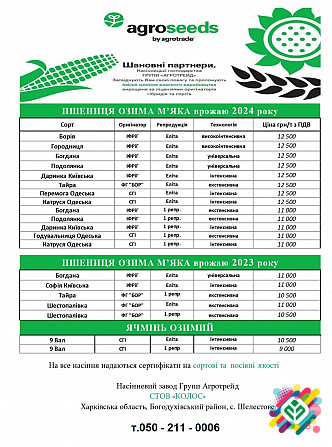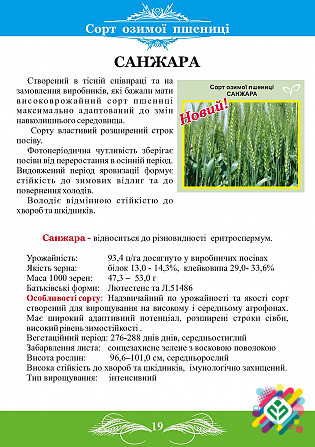 Селекційно-виробничий центр «Яровіт» пропонує високоякісне елітне насіння полтавської селекції, яке відповідає найвищим стандартам якості. Наше насіння проходить власну калібровку, гарантуючи відсутність половинок, щуплих та щербатих зерен. Наша озима пшениця сорту «Санжара» (середньостиглий, еліта)...