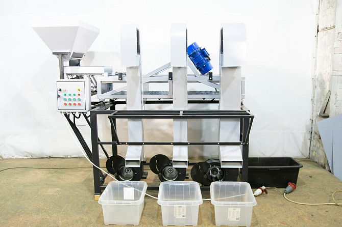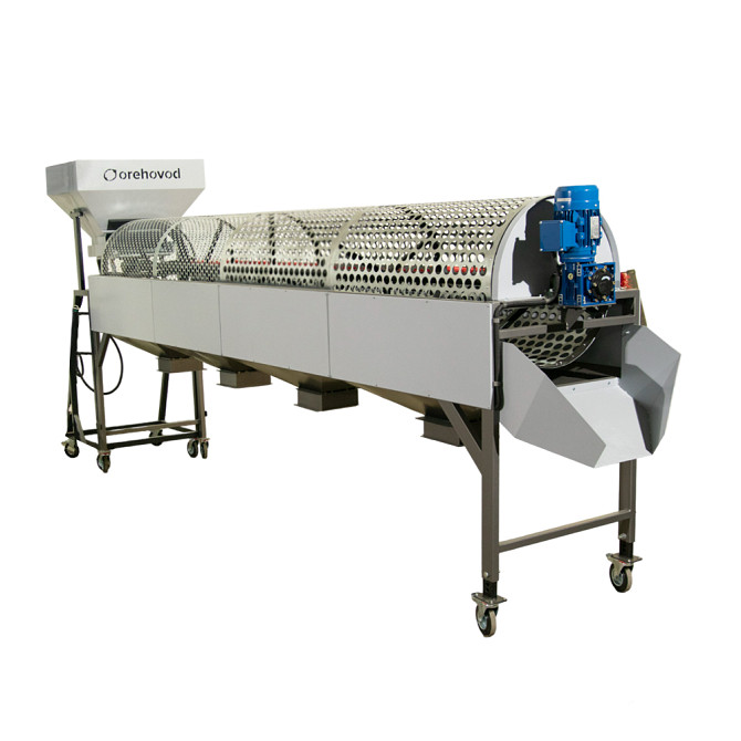Роторний калібратор волоського горіха - установка, призначена для сортування волоського горіха в шкаралупі за розмірами. Він калібрує горіх на 4 фракції: 28, 32, 36, 40 мм (це найчастіші розміри волоського горіха). На вимогу замовника розміри отворів можуть бути змінені. Калібрування (сортування) во...