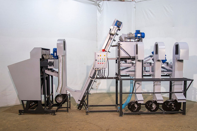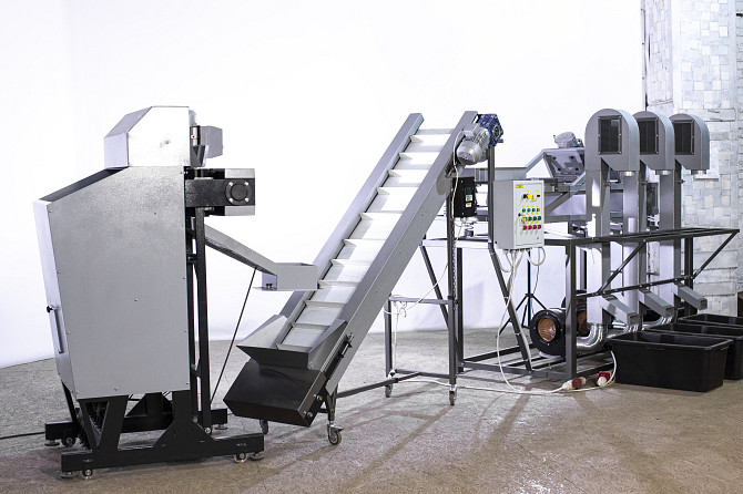 Промислова лінія для переробки фундука у промислових садах та на виробництвах. Лінія являє собою єдине обладнання компактних розмірів, із загальною панеллю керування та максимальною автоматизацією процесу. Промислова лінія виконує переробки: Переміщення фундука в горіхокол. Конвеєр з великим бункеро...