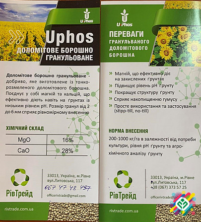 Сьогодні ТОВ «РівТрейд» пропонує використовувати гранульоване добриво на основі курячого компосту U*Phos Organic+. Це інноваційний продукт, виготовлений за технологією керованої аеробної ферментації органічних відходів сільського господарства. У процесі виробництва у спеціальних камерах відбуваєтьс...