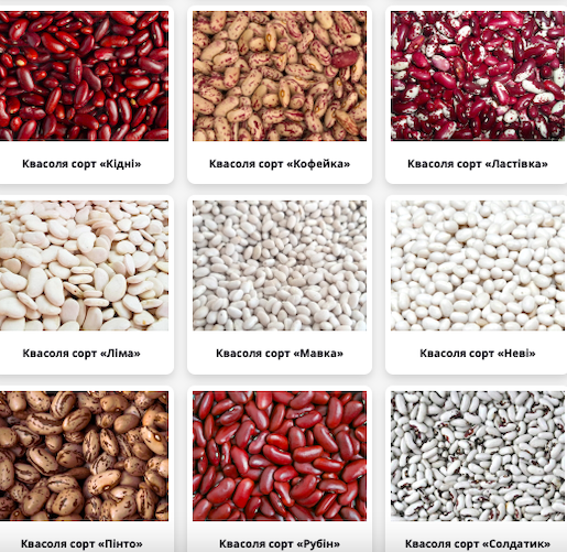 **Технічний опис продукту:** ***Сорти квасолі на насіння*** У продажу представлені різноманітні сорти квасолі на насіння, що відрізняються за розміром, смаковими якостями та адаптацією до різних кліматичних умов. Кожен сорт відзначається високою якістю насіння, що гарантує успішне проростання та в...