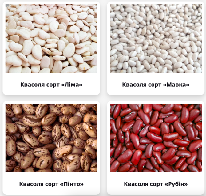 У продажу представлений широкий асортимент квасолі, який включає понад 20 сортів. Квасоля, яка є важливим джерелом білка та корисних мікроелементів, є популярною продукцією на ринку. Доставка доступна по всій території України. Мінімальна партія для замовлення становить 5 тонн. Квасоля є важливим п...