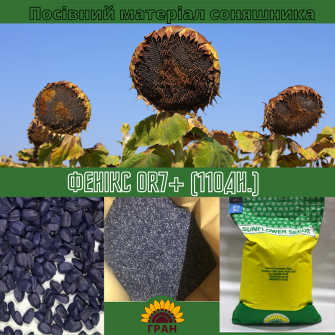 Гібрид соняшнику ФЕНІКС OR7+ (110 днів) – інноваційний продукт, що представлений на українському ринку. Цей гібрид відзначається високою врожайністю навіть в умовах посушливого клімату та володіє великою стійкістю до нових штамів хвороб та шкідників. Соняшник ФЕНІКС OR7+ є результатом української с...