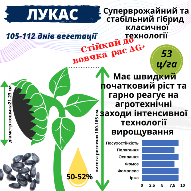 Гібрид соняшника Фенікс OR7+ - інновація на українському ринку, розроблений українськими селекціонерами. Цей суперврожайний гібрид відзначається високою стійкістю до посухи, що була характерною для 2020 року, та демонструє вражаючий урожай. Рослина соняшника Фенікс має середню висоту, великі шапки...
