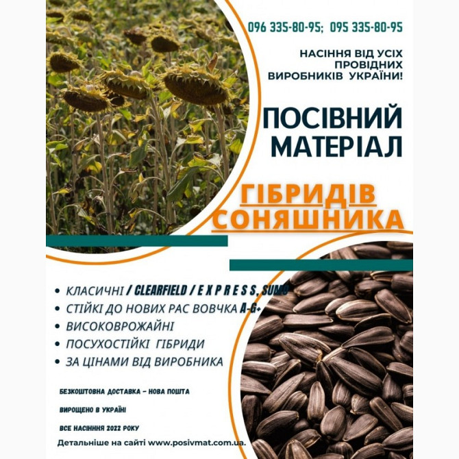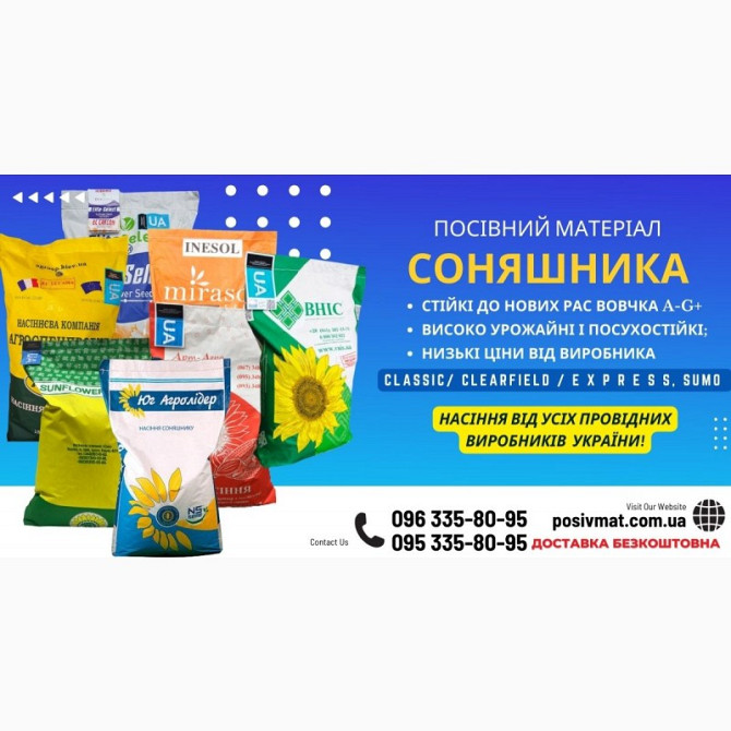 Пропонуємо насіння соняшнику для посівного сезону 2021 року за доступною ціною та з гарантією якості. Наш асортимент включає в себе різноманітні гібриди соняшнику, які відповідають різним вимогам та умовам вирощування. Нижче наведено деякі з наших гібридів: 1. Гібриди соняшнику під Експрес: -...