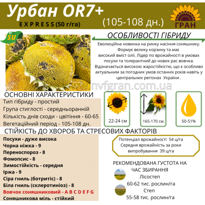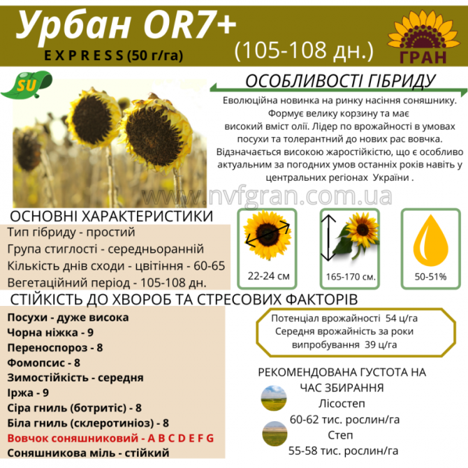 **Насіння соняшникагібрид Урбан OR7+** Ціна: 2200 грн/п.о. (Стандарт), 2500 грн/п.о. (Екстра) + безкоштовна доставка + гербіцид у подарунок Гібрид соняшнику Урбан OR7+ є передовою новинкою на ринку насіння соняшнику. Він володіє стійкістю до гербіцидів, що містять трибенурон-метил (SU) у кількості...