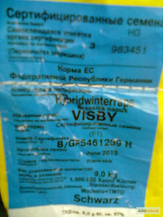 **Технічний Опис Гібридних Семян Рапсу "Лембке Висбі"** Пропонуємо до вашої уваги високоякісні гібридні семена рапсу "Лембке Висбі" від німецького виробника. Цей сорт відноситься до групи ранньостиглих сортів, що дозволяє отримати врожаї вже на початку вегетаційного періоду. **Характеристики проду...