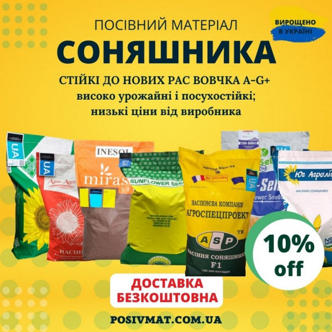 Знижки на насіння соняшнику та кукурудзи У пошуку високоякісного посівного матеріалу соняшнику та кукурудзи за доступними цінами? Ви потрапили за адресою! Лише зараз у нас діють шалені знижки: Насіння соняшнику: - Класичні гібриди - Гібриди під брендом Гранстар (Express, Sumo) - Гібриди під брендо...