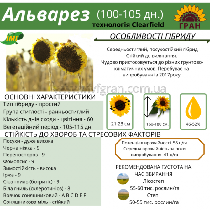 Гібриди соняшника, що толерують гранстар (Експрес, СУМО), доступні за вигідною ціною та гарантією якості. **УКРАЇНСЬКА СЕЛЕКЦІЯ:** 1. **УРБАН OR7+ NEW** (105-108 днів, ранньостиглий): Стійкий до вилягання та A-G + рас вовчкаФЕНІКС OR7+ (NEW) (110 днів, ранньостиглий): Жаростійкий, A-G + рас вовчка...