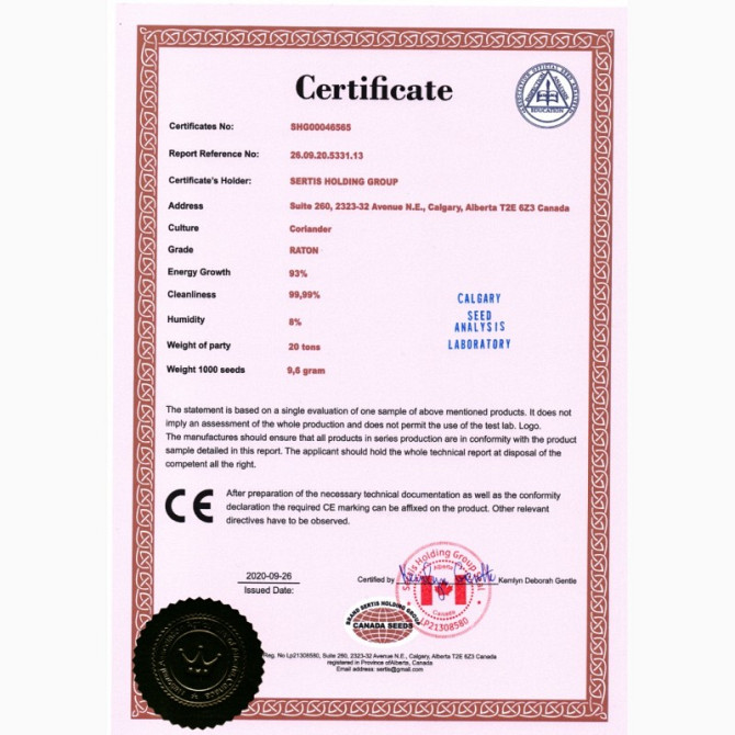 Продаються насіння коріандру сорту "Оксаніт" (еліта), що є першою репродукцією. Ціна становить 45 000 гривень за тонну. Коріандр (Coriandrum sativum) - рослина з родини Апіакові, відома своїм використанням як спеція та лікарська рослина. Сорт "Оксаніт" відомий своїми високими врожайності та якістю ...