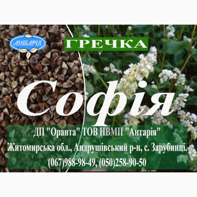 Сорт гречки "Софія" було внесено до Реєстру сортів рослин України в 2014 році після проведення державних сортовипробувань. Цей сорт був виведений компанією ТОВ НВМП "Антарія". Сорт гречки "Софія" характеризується високою урожайністю і стійкістю до полягання і осипання. Рослини цього сорту є прямост...