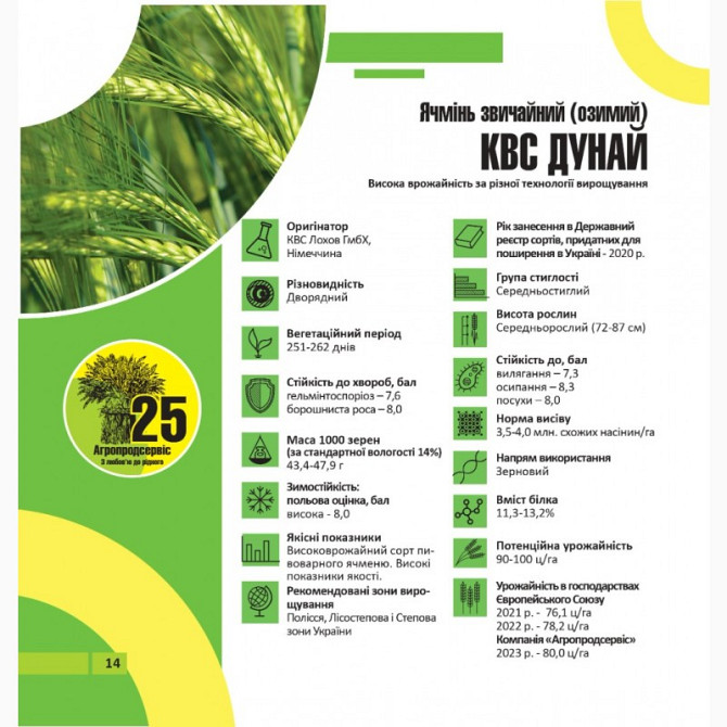 Зимостійкий пшеничний сорт "КВС Дунай" - ідеальний вибір для вирощування пшениці в умовах помірного клімату. Насіння цього сорту вирізняється високою якістю та стійкістю до негоди, що робить його надійним варіантом для сільськогосподарських ділянок зі змінними погодними умовами. Технічні характерис...