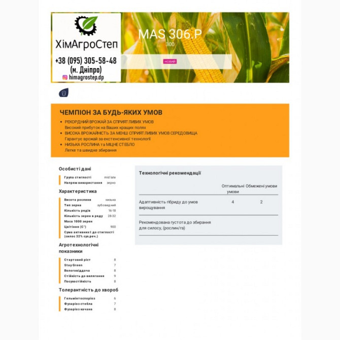 **Кукурудза середньостигла групи з високою толерантністю до стресових умов** У середньостиглій групі кукурудзи "Мрія справжніх професіоналів" виявлено надзвичайну толерантність до стресових умов, зокрема тривалої повітряної та грунтової посухи. Цей гібрид кукурудзи має вражаючий потенціал урожайнос...