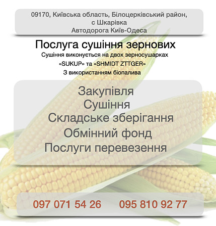 Постачання кукурудзи з власних полів. Наше підприємство спеціалізується на вирощуванні та постачанні кукурудзи в Чернівецькій, Хмельницькій, Івано-Франківській, Тернопільській, Черкаській, Волинській, Львівській, Закарпатській, Рівненській областях та сусідніх районах. Наша продукція відповідає ста...