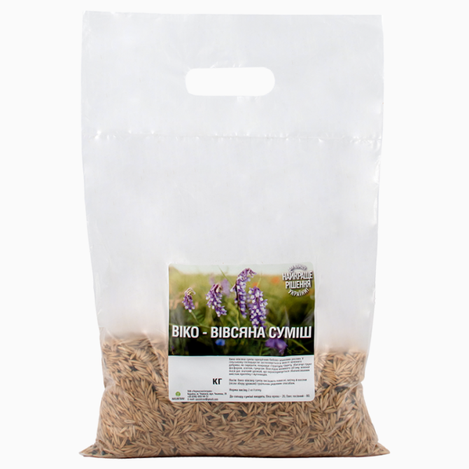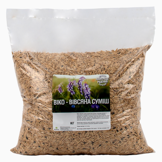 Суміш для посіву поля складається з двох видів насіння: віка яра (20%) та овес посівний (80%). Ця однорічна суміш бобово-злакових рослин широко використовується у сільському господарстві як зелене добриво та сидерат. Вона сприяє покращенню структури ґрунту і збагаченню його фосфором, азотом та гумус...