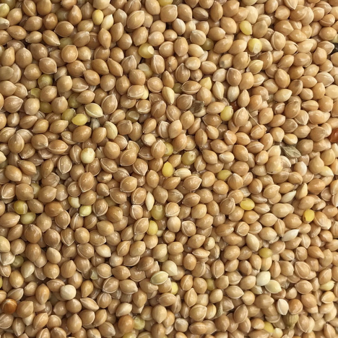 Сорт Полтавське золотисте (просо посівне), Еліта Репродукція посадкового матеріалу: Еліта Фракція насіння: Екстра Насіння ультраскоростиглого проса сорту Полтавське золотисте є відмінним вибором для сівозміни та отримання високоякісного врожаю. Зернівка цього сорту має округлу форму, бронзове заба...