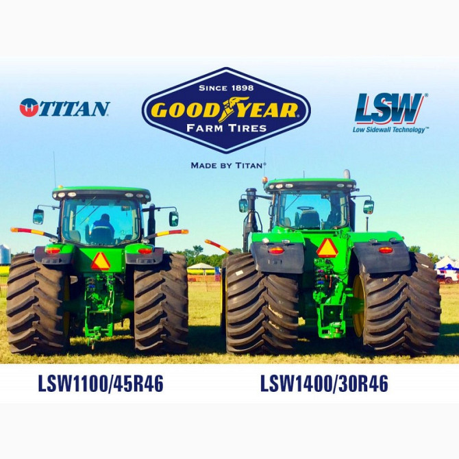 Країна виробництва: США (Америка) Характеристики: - Діаметр: 46R - Конструкція каркасу: радіальна - Система пониженого тиску: VF - Бренд: Goodyear - Модель: Optitrac R-1W(LSW) - Тип шини: супер широка (super single) Шина Optitrac R-1W(LSW) від Goodyear спеціально розроблена для заміни шин John Dee...
