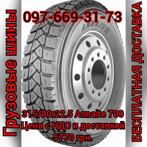 Грузова шина 315/80-22.5R22.5 від АннаітеКраїна виробник: КитайТип: тягова, ведучаДіаметр: 22.5 дюймаШирина: 315 ммВисота профілю: 80% від шириниКонструкція: радіальнаДодаткові характеристики: безкамернаВантажопідйомність: 5770 кгШина відповідає стандартам безпеки та якості, що підтверджені сертифік...