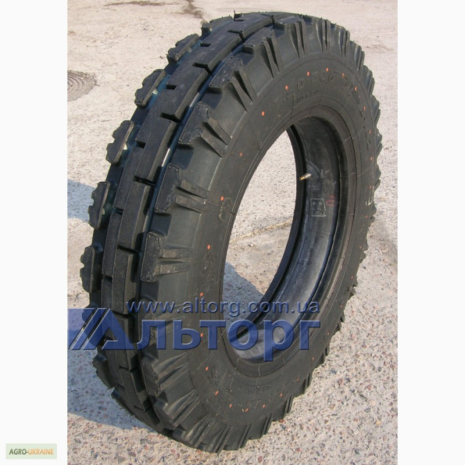 **Шина 7.50-20 В-103: Технічний Опис** Шина 7.50-20 В-103 є діагональною конструкцією з універсальним типом рисунку протектора, розроблена для використання на направляючих колесах тракторів та сільськогосподарських машин. Вона відповідає вимогам навантаження до 875 кг та рекомендованому тиску у 280...