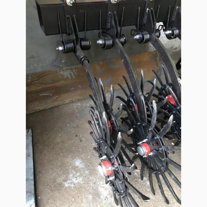 Ротаційна борона мотузкова "Агро клевер": Технічні характеристики: - Ширина захоплення: 6 метрів - Суцільний брус: 140x140x6 мм - Відстань між колесами: 100 мм - Колеса на закритих підшипниках (2 шт. на одному колесі) - Зуб виготовлений за американським аналогом, з повністю повтореною геометрією і м...