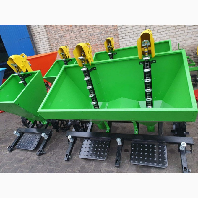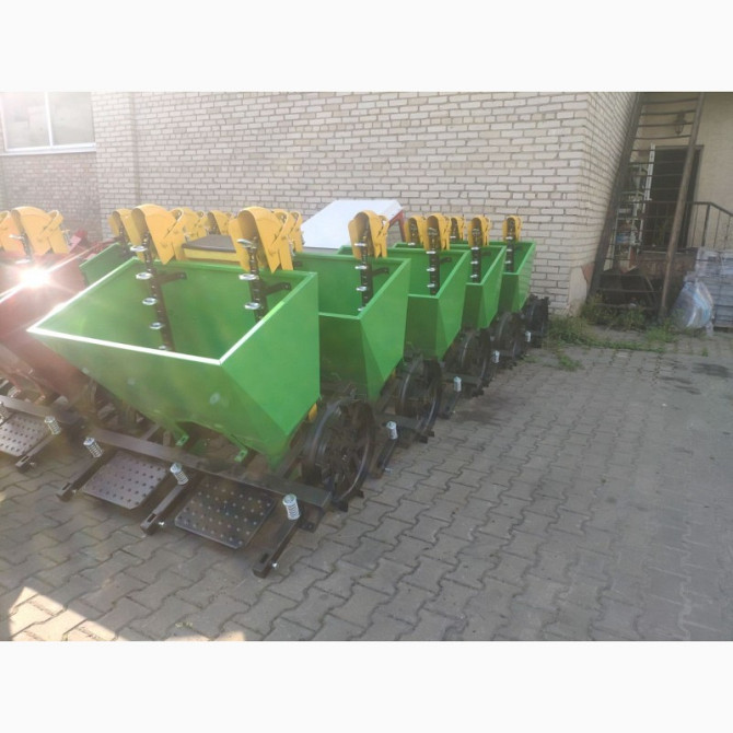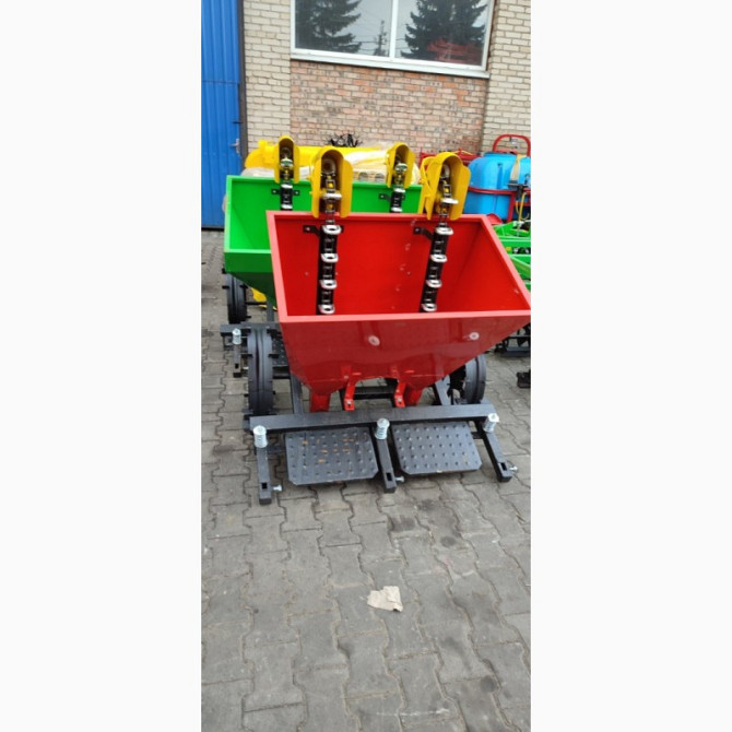 Новаторська посівна машина для вашого господарства Технічні характеристики: - Тип: начіпний - Продуктивність: 0,1 га/год - Крок висаджування: 20 см, 25 см, 30 см - Глибина висаджування: 5-15 см - Діаметр загортачів: 30 см - Об'єм бункера: 45 л - Діаметр опорно-приводних коліс: 35 см - Сумісність з ...