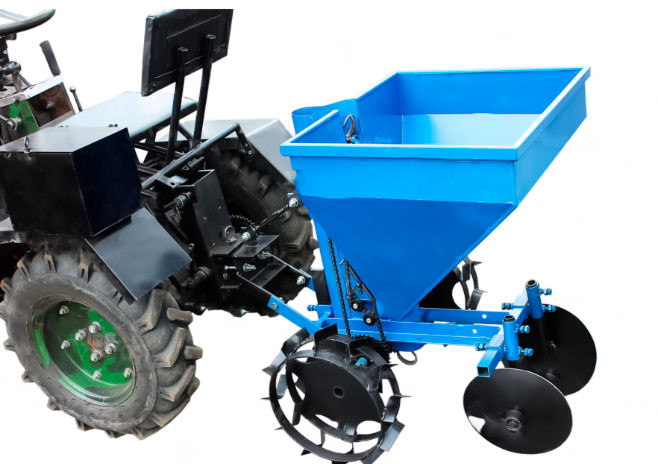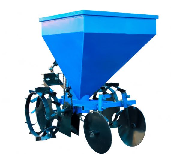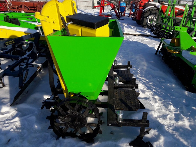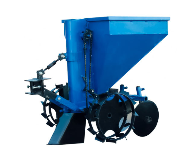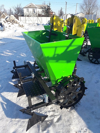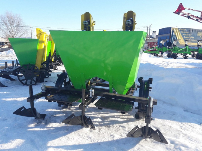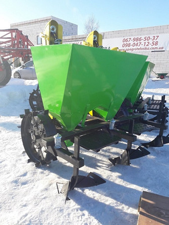 Картофелесажалка 2-рядкова для мототрактора КС14 із бункером для удобрень (КС14) Картофелесажалка КС14 призначена для використання з мототракторами, що мають одно точкове зчеплення. Цей продукт є незамінним помічником у вирощуванні картоплі, забезпечуючи швидке та ефективне сіювання. Особливості к...
