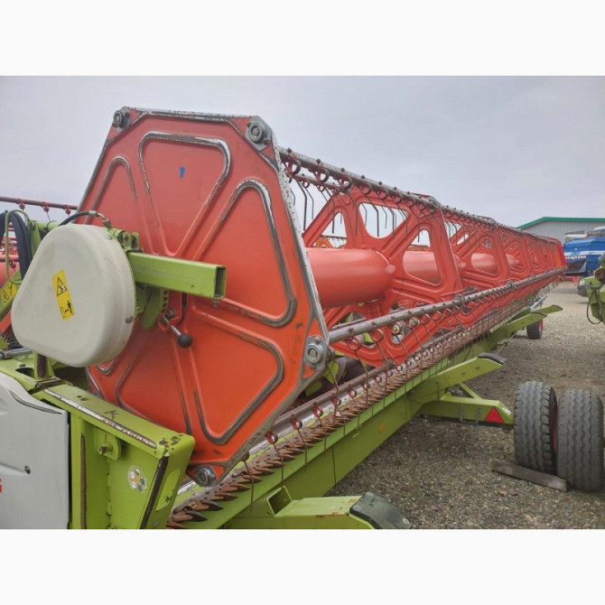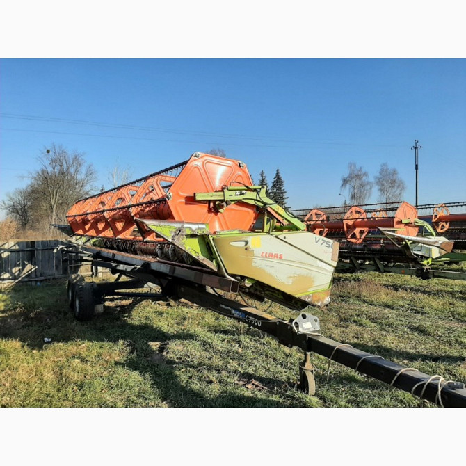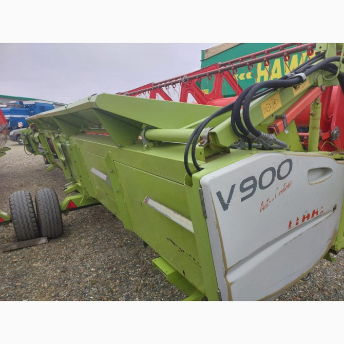 **Зернова жатка Claas V900 з телегою (2012 рік)** Зернова жатка Claas V900 є високоякісним технічним засобом для збирання зернових культур. Вона була випущена у 2012 році і має ряд переваг, що роблять її ефективним пристроєм для сільськогосподарських робіт. Технічні характеристики: - Ширина жатки:...