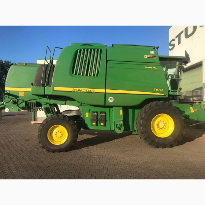 Комбайн John Deere T-670 2008 року випуску є потужним засобом для збирання врожаю. Він оснащений двигуном потужністю 430 кінських сил, який забезпечує високу продуктивність під час роботи на полі. На лічильнику машини зазначено 1700/1400 мотогодин роботи. Цей комбайн обладнаний жаткою шириною 7.6 м...