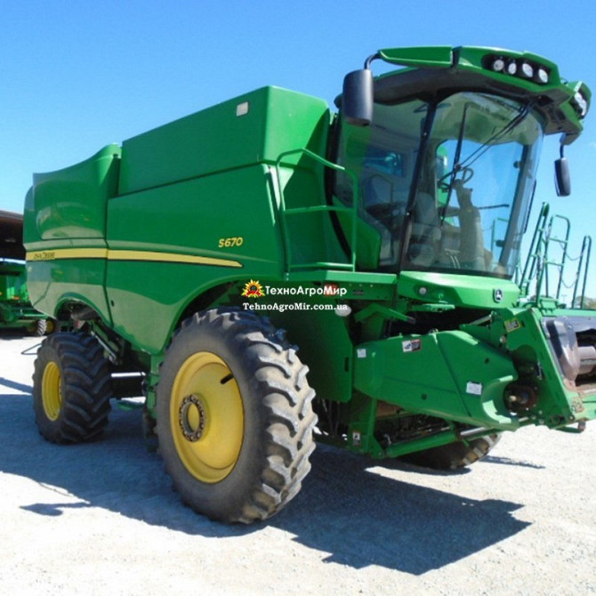 ## Технічний Опис Зерноуборочного Комбайну John Deere S 670 - **Виробник:** John Deere - **Модель:** S 670 - **Рік випуску:** 2012 - **Наработка мотогодин:** 2780/1930 - **Двигун:** John Deere - **Об'єм двигуна, л:** 9 - **Кількість циліндрів:** 6 - **Номінальна потужність, к.с.:** 377 - **Ти...