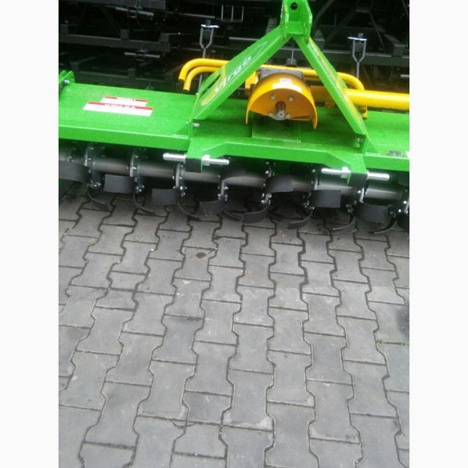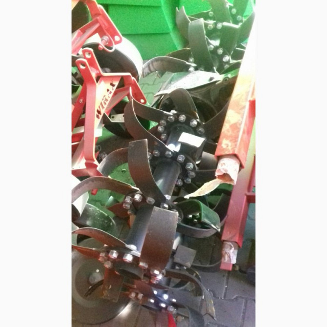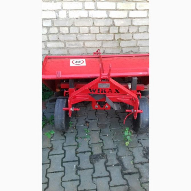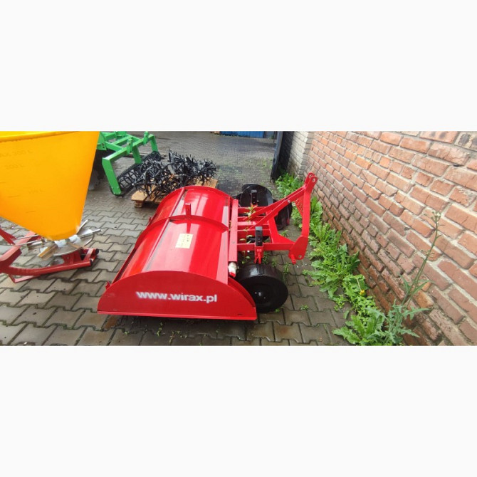 **Грунтофреза Wirax 1,40 - 2,10 м: Технічний Опис** Грунтофреза Wirax є навісним пристроєм, призначеним для обробки ґрунту на глибину до 15 см. Цей агрегат ідеально підходить для тракторів та міні-тракторів з потужністю від 25 к.с. Вироблена в Польщі компанією Wirax (також доступна модель від Bomet...