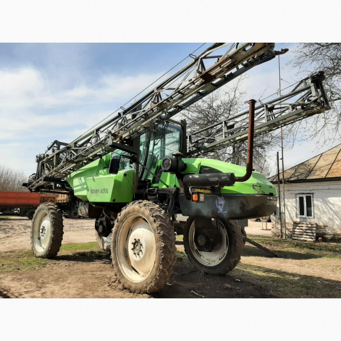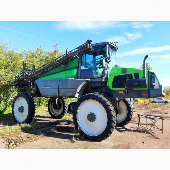 Обприскувач самохідний Tecnoma Laser 4000 2007 рік випуску Швидкість 40 км/год Робоча ширина 36 м Мотор Deutz потужністю 210 л/ємність бака4000 л Поворотні осі - три види повороту коліс