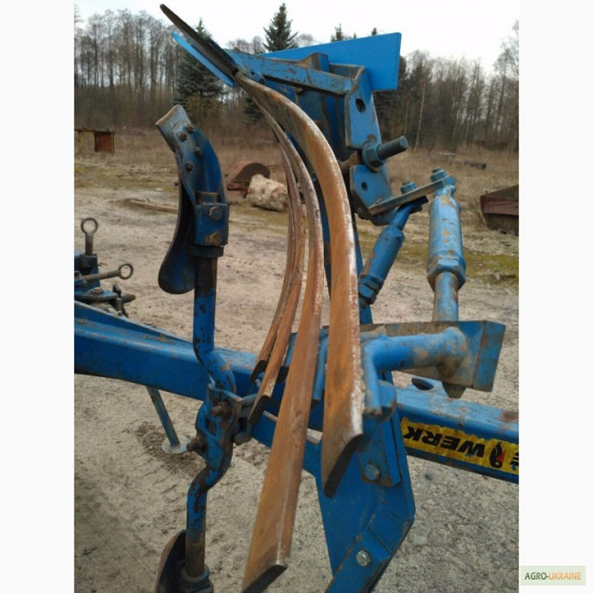 Оборотний плуг Rabe Werk 4 корпусний, схожий на Lemken, з полосовим відвалом та рамою розміром 120x120 мм призначений для складної оранки, зокрема під кукурудзу. Цей плуг має 3 основних корпуси та 1 додатковий з предплужниками. Він знаходиться у відмінному стані, з новими долями та полевими дошками,...