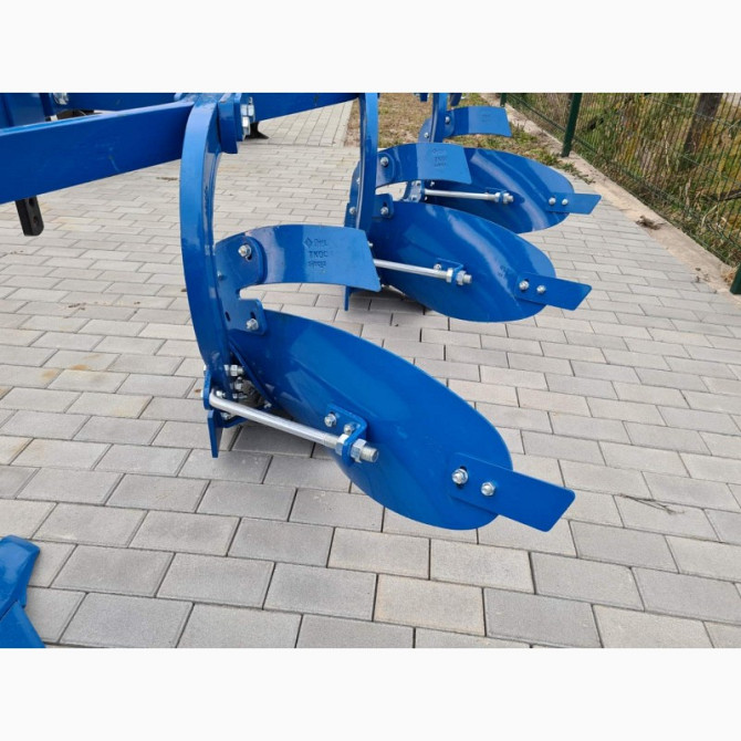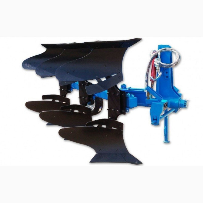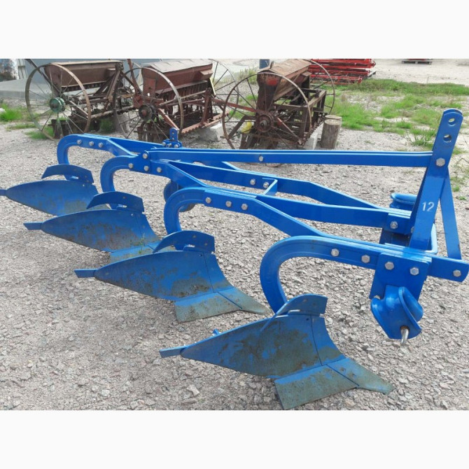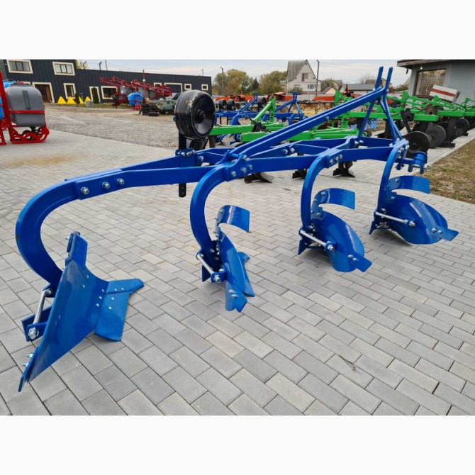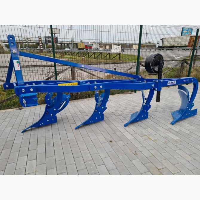 Плуг навісний оборотний з чотирма корпусами (три основні та один допоміжний) призначений для обробітку ґрунту. Кожний корпус має бесперебійну механічну захисту, що забезпечує безперервну роботу пристрою та захищає від пошкоджень. Розмір між корпусами становить 100 см, що забезпечує оптимальне обробі...