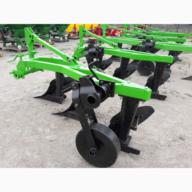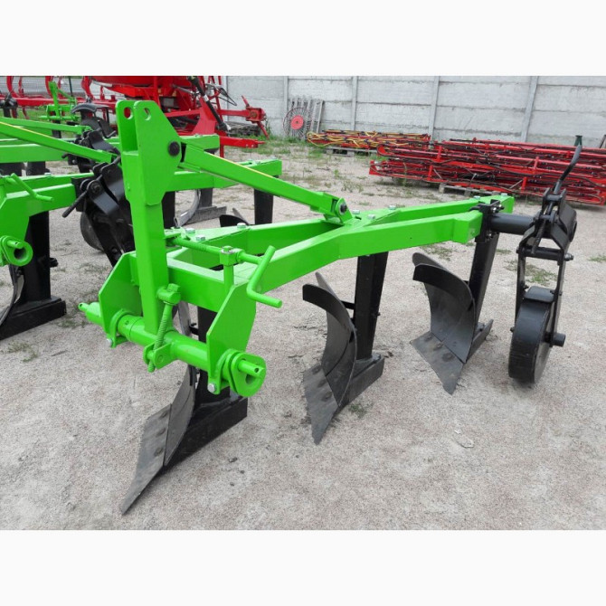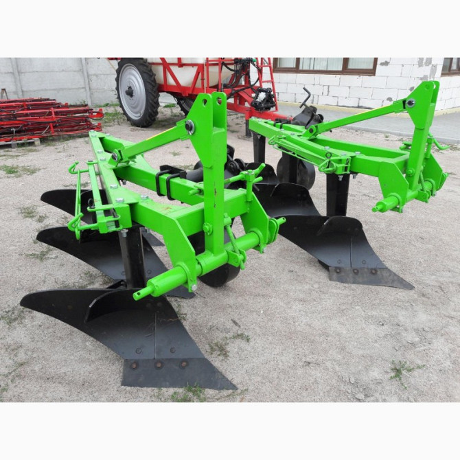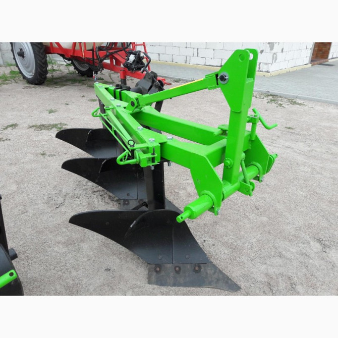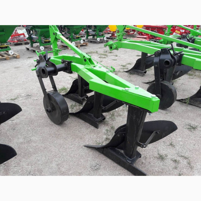 **Технічний опис трьохкорпусного плуга Bomet для мінітрактора** Трьохкорпусні плуги відомого виробника Bomet (Польща) призначені для проведення середньої та глибокої оранки рівних полів без каміння на будь-яких типах ґрунту. Для кам'янистих ділянок рекомендується використовувати плуги зі зрізним бо...