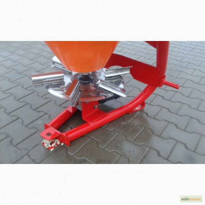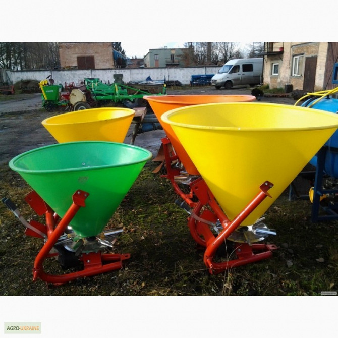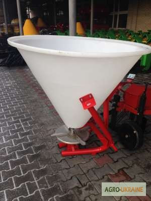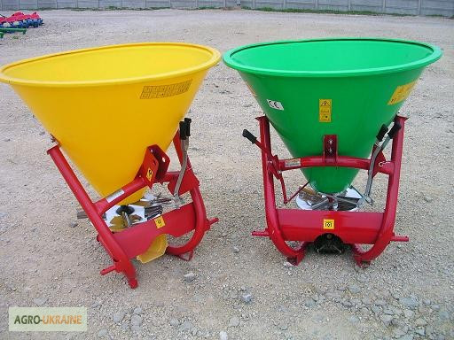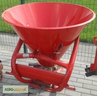 Навісні польські розкидачі ємністю на:200 л300 л500 л650 л. Матеріал лійки розкидача пластаму або метал (уточнювати по телефону) Робочі запчастини диску лопатки можуть бути як порошковим фарбуванням так і з нержавіючої сталі. Ширина розкидання 5 - 13 м.