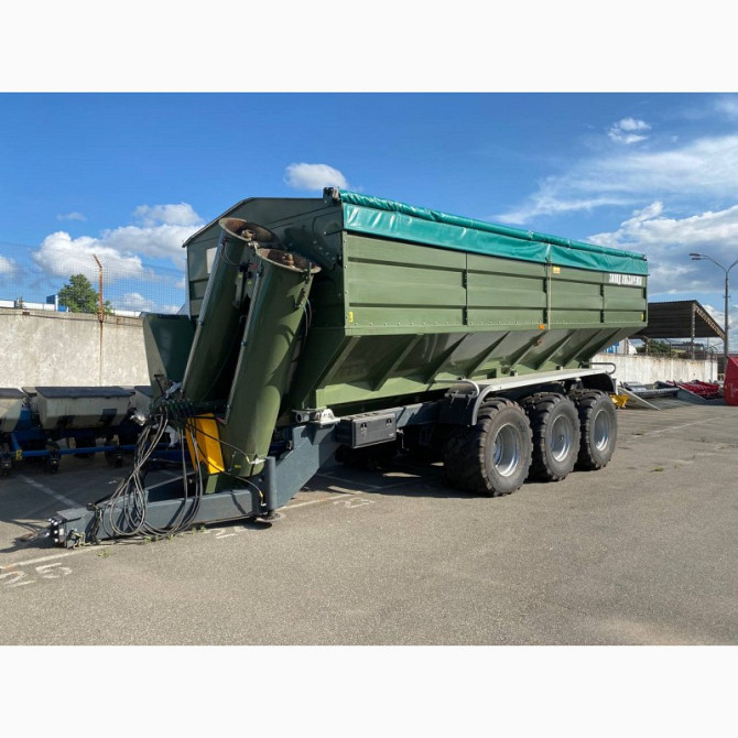 **Технічний опис бункерного жниварки Bergmann 3000** Виробник: Bergmann **Технічні характеристики:** - Об'єм бункера: 30 м³ - Висота шнека: 4,9 м - Продуктивність: 400 тон на годину - Габаритна довжина: 7,9 м - Габаритна ширина: 3 м - Висота: 3,74 м - Розмір шин: 700/50-22.5 - Рекомендована потужн...