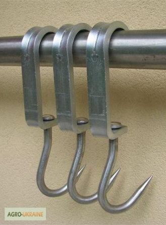Крюк скользящий для трубчатих подвісних шляхів призначений для транспортування туш та напівтуш по трубчатих подвісних шляхах. Скоба виготовлена з оцинкованої сталі розмірами 40х10мм або 40х12мм, а розміри скоби становлять 190х70х40мм. Крюк виготовлений з нержавіючої сталі діаметром 16мм і висаженою ...