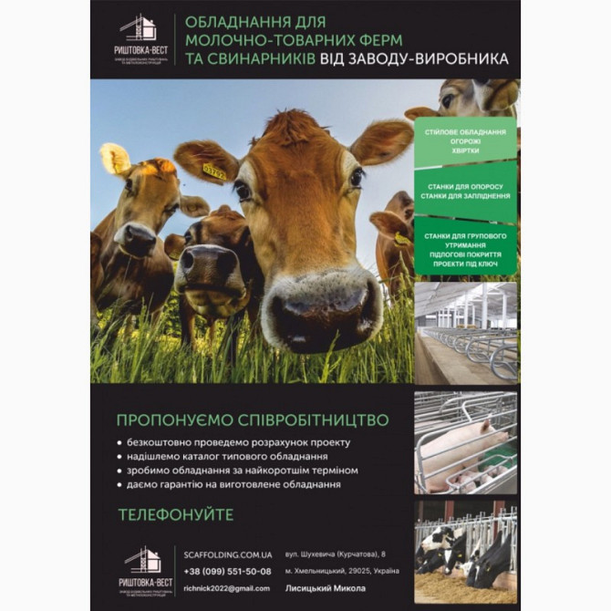 **Технічний опис продукції компанії РИШТОВКА-ВЕСТ** Компанія РИШТОВКА-ВЕСТ є провідним виробником обладнання для молочно-товарних ферм та свинарників. Наша продукція відома своєю надійністю, високою якістю та ефективністю в галузі сільського господарства. **Характеристики продукції:** 1. *Молочно...