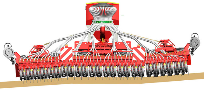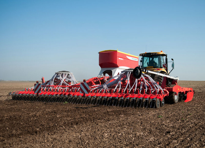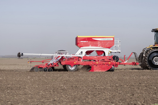 Модель: TERRASEM C9 Технічні характеристики: - Робоча ширина: 9 метрів - Транспортна ширина: 3 метри - Транспортна висота: 4,5 метри - Відстань між сошниками: 12,5 сантиметрів - Кількість сошників: 72 штуки - Тиск сошника на ґрунт: 40-120 кг - Діаметр ущільнюючого котка: 380 мм - Об'єм бункеру: 510...