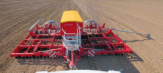 Модель: ТЕРРАСЕМ C6 Технічні характеристики: - Робоча ширина: 6 метрів - Транспортна ширина: 3 метри - Транспортна висота: 3 метри - Відстань між сошниками: 12,5 см - Кількість сошників: 48 штук - Тиск сошників на ґрунт: 40-120 кг - Діаметр ущільнюючого котка: 380 мм - Об'єм бункеру: 5100 літрів - ...