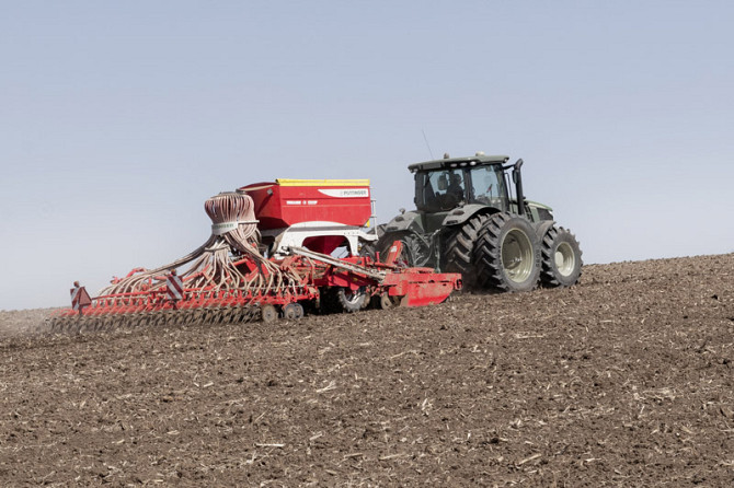 Модель: TERRASEM C8 Технічні характеристики: - Робоча ширина: 8 метрів - Транспортна ширина: 3 метри - Транспортна висота: 3,98 метра - Відстань між сошниками: 12,5 сантиметрів - Кількість сошників: 64 штуки - Тиск сошників на ґрунт: 40-120 кілограм - Діаметр ущільнюючого котка: 380 міліметрів - Об...