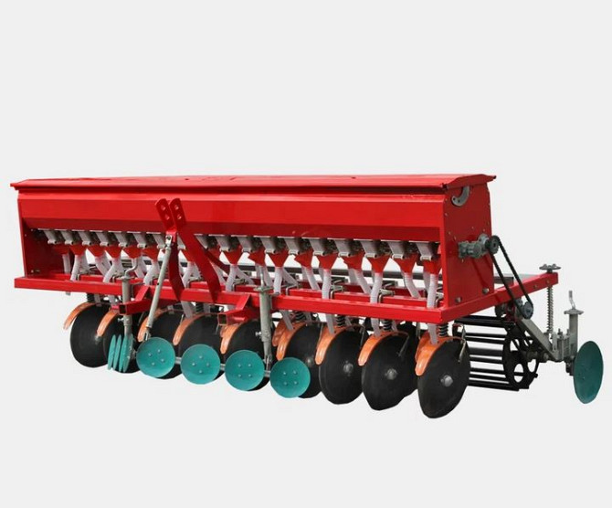 **Навісна зернотукова сіялка з дисковими сошниками та котушковим висівним апаратом** Ціна: уточнюйте за телефоном. Навісна зернотукова сіялка з дисковими сошниками та котушковим висівним апаратом призначена для ефективного посіву різних видів насіння, зокрема зернових культур (пшениця, жито, ячмін...