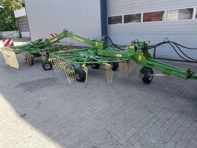 Граблі (валкоформувач) Krone Swadro 710/26 виробництва 2008 року є відмінним вибором для сільськогосподарських робітників, які шукають надійний і ефективний інструмент для виконання робіт з сінокошіння та сінозбирання. Технічні характеристики включають: - Робоча ширина захвату: 6,20 метрів, що дозв...