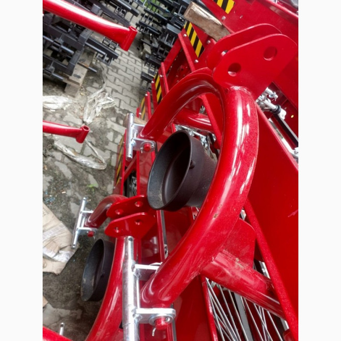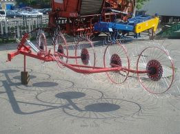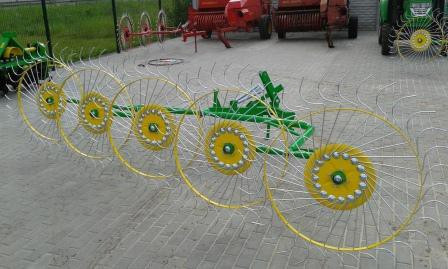 Граблі-сінокосарки з п'ятьма колесами виконують одночасно кілька функцій – збирання трав'яної маси (включаючи солому) з коси в снопи в заданій ширині, розгортання її в снопах, а також перекочування снопів, потрапивших під дощ. Збільшена ширина захвату та оптимальна робоча швидкість забезпечують висо...